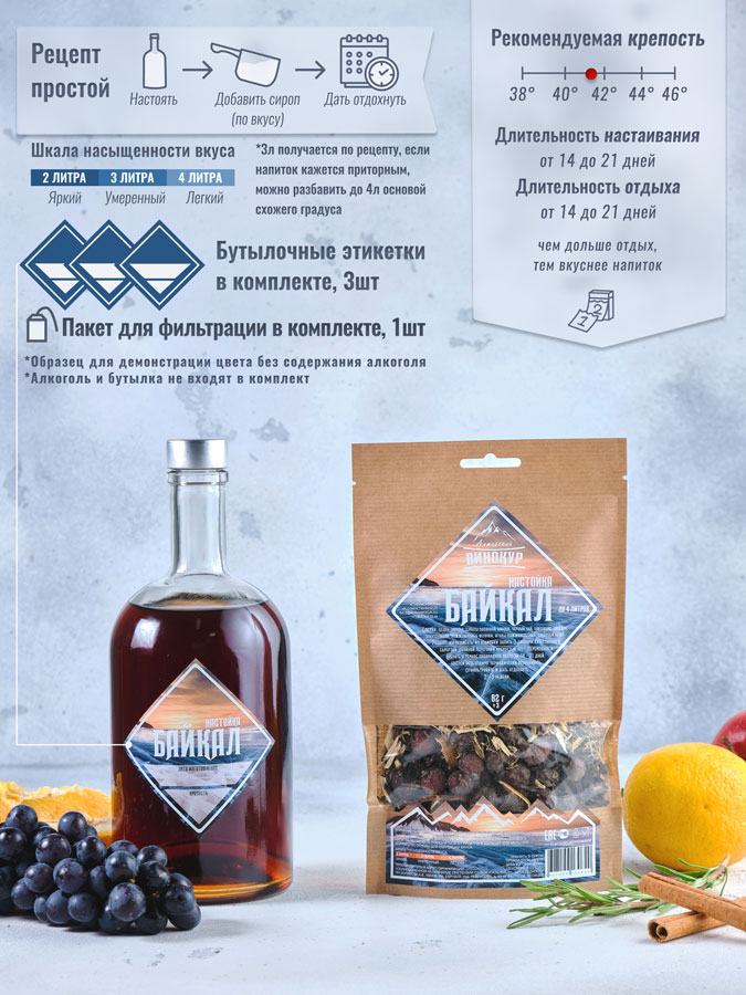 «Байкал» от фирмы Алтайский Винокур — это не только наслаждение для вкусовых рецепторов, но и подарок для тех, кто любит натуральное. Погрузитесь в мир природных богатств Байкала с настойкой «Байкал» от Алтайского Винокура и насладитесь истиной гармонией вкуса.