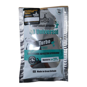 Скидки! 5 шт — по 260 руб. 10 шт — по 250 руб. Bragman 48 Universal — мощные спиртоустойчивые дрожжи, предназначенные в первую очередь для сбраживания браг различной крепости на основе сахара или декстрозы, однако, вы можете использовать их с любым суслом, полученным из кукурузы, пшеницы, ячменя или ржи. В состав помимо дрожжей входят питательные вещества, витамины и микроэлементы. Спиртовые дрожжи Bragman 48 Universal имеют «двойное» использование. Вы можете использовать их для получения до 20% алкоголя (21 % в особых случаях) в течение 7-10 дней, или 14 % в течение 48 часов. Дрожжи не требуют разбраживания. Применение: налить в емкость 21-22 л воды, высыпать сахар 9 кг, полностью растворить его. Всыпать дрожжи и перемешать. Температура брожения 18-24°С. |