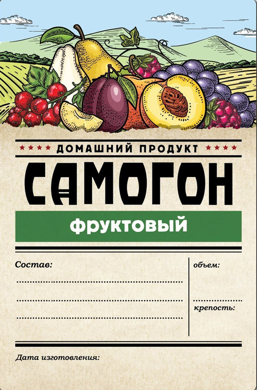 Самоклеющие этикетки «Самогон» в ассортименте. Размер 70х100.