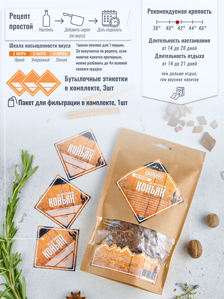 Настойка «Коньяк по-Латгальски» близка по вкусовым качествам к элитному коньяку. Набор для приготовления настойки от «Алтайского Винокура» позволяет вам за 2 недели в домашних условиях создать терпкий напиток с ароматом выдержанного в дубовой бочке дорогого алкоголя и с приятным коньячным послевкусием.