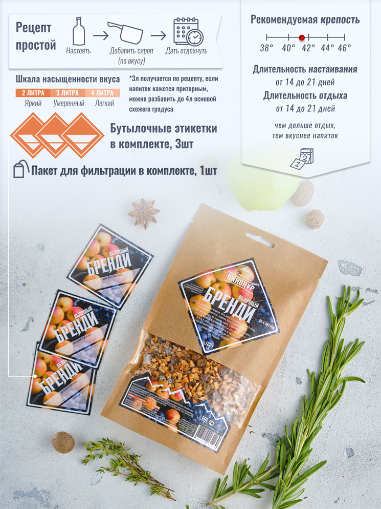 Изюм, яблоко сушеное, кора дуба, перегородки грецкого ореха, чернослив, декстроза, ванилин, перец черный горошек.
